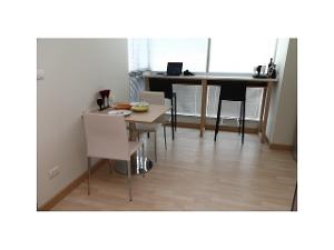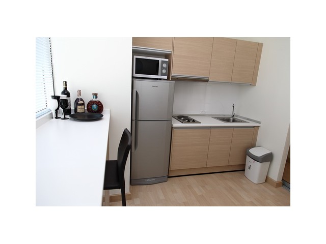 ห้องครัว : โต๊ะรับประทานอาหาร ขนาด 2 ที่นั่งพร้องเก้าอี้ 2 ตัว เค้าท์เตอร์ระเบียง พร้อมเก้าอี้สตู 2 ตัว ชุดเค้าท์เตอร์ครัว พร้อมเต้าไฟฟ้า เครื่องดูดควัน ซิงค์ล้างจาน ตู้แขวนเหนือศรีษะสำหรับเก็บของ ตู้เย็น 1 เครื่อง ไมโครเวฟ 1 เครื่อง