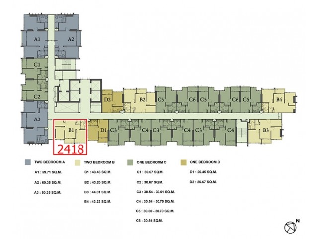 Type : 2 Bedroom 24 floor Size 43.43 q.m.