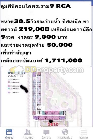 KC156 ขาย คอนโดลุมพินีเพลส พระราม 9 รัชดา 33.90 ตรม. ชั้น7 ตึกD ราคาถูกมากเพียง 2.99 ลบ.