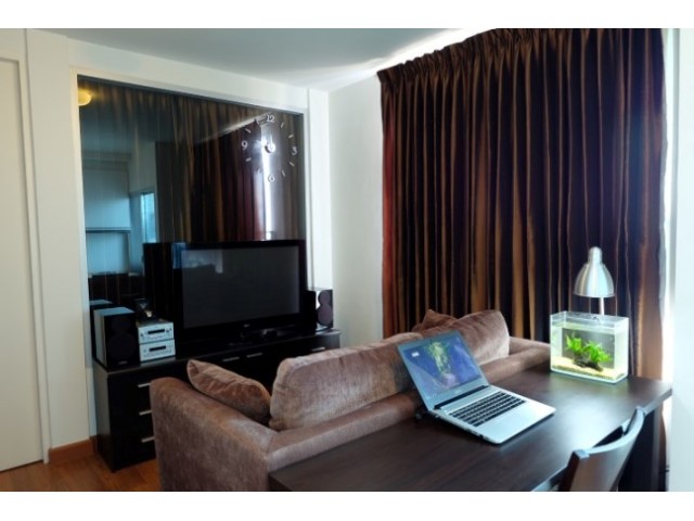 -. ห้องขนาด 35.04 (รวมระเบียง) เพดานสูง 2.6 เมตร หน้ากว้าง 7 เมตร พื้นลามิเนต ห้องน้ำปูกระเบื้อง