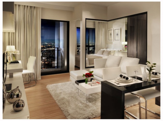 ชื่อโครงการ Urbano Absolute ของพฤกษา เฟอร์นิเจอร์ครบพร้อมสิ่งอำนวยความสะดวกต่างๆ โดยห้องด้านนึงติดกับห้อง 1 bedroom และอีกด้านติดกับห้อง studio