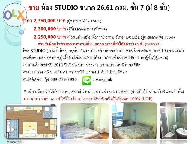 ขายห้องราคาดีคอนโด The Kris Express (Ratchada 17) ห้องตกแต่งสวย พร้อมให้เข้าอยู่