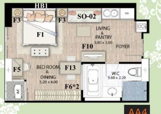 ขนาดพื้นที่ 38.0 ตารางเมตร