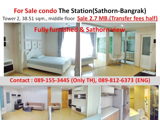 ขายถูก 1.79 ล้าน คอนโด เดอะสเตชั่น สาทร บางรัก คลิกเลย