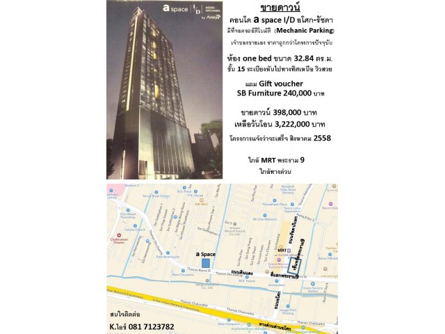 ขายคอนโดโครงการ A Space อโศก-รัชดา - 2300000 บาท ติดต่อคุณ Easyhomeland Easyhomeland