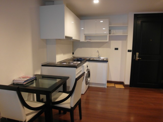 1 bedroom,1 bathroom,1 kitchen pantry, 1 living room, 5th floor, condo suite overlooks pool on Shukhumvit 52 Road. Fully furnished, TV LCD 32”, well-equipped kitchen including induction hob, cooker hood, fridge, cabinets. King-size bed and big wardrobe. Living room with 2 sofas, cabinet, desk and chair, coffee table. Two split air conditioners. Washing machine 7 kg. Water heater All as-new, Card-controlled security. Clubhouse with gym, Large swimming pool. Garden compound includes open air lobby, Shuttle golf car to On-Nut Sky Train Station (Free).