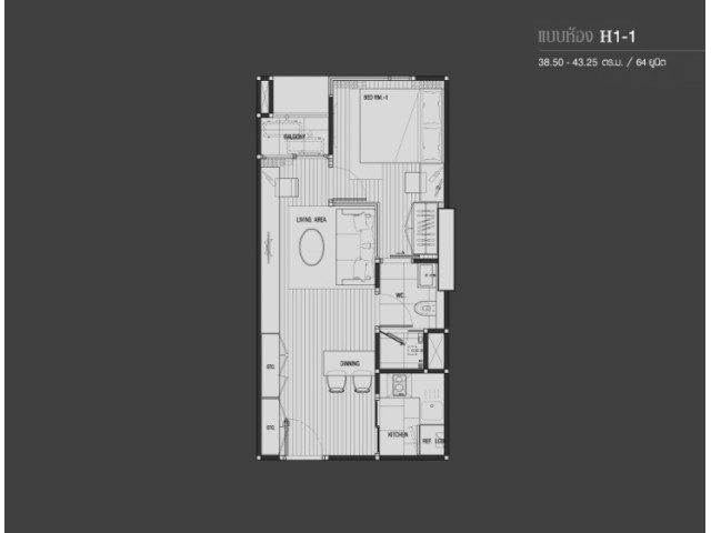 Resale down payment H condo 1 b/b ,Type H1-1 , 39.25 sq.m