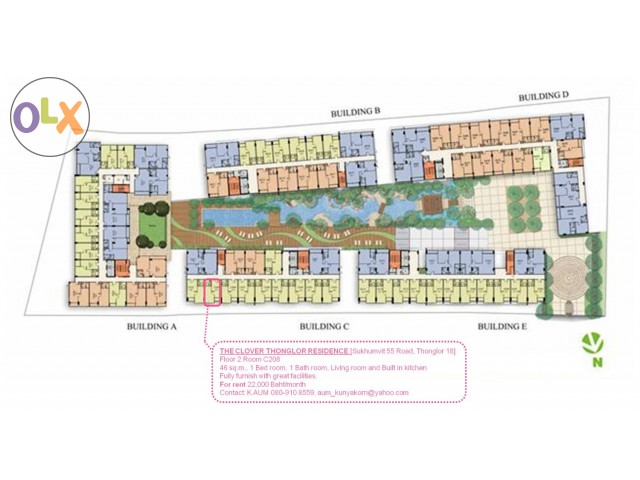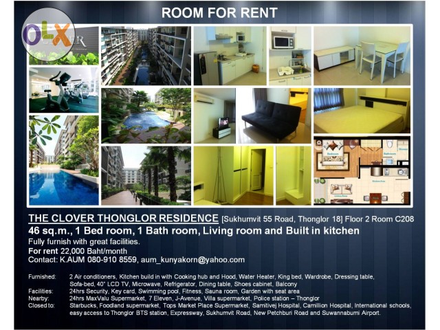 ค่าเช่า: 22,000 บาท/เดือน (สัญญา 1 ปี เรียกเก็บเงินประกัน 2 เดือน และค่าเช่าล่วงหน้า 1 เดือน)