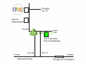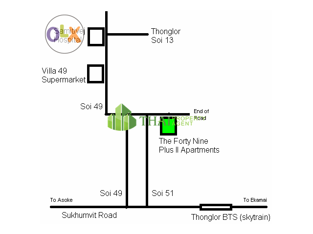 Walking distance to Thonglor BTS/Skytrain (700m), Fuji Japanese Supermarket (100m), Samitivej Hospital (300m), Villa 49 Supermarket/Starbucks (200m)