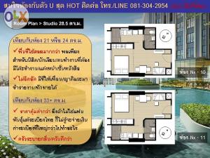 * พลาดไม่ได้!! กับห้องที่หายากที่สุด สวยที่สุด ฮอตที่สุด ของโครงการนี้ ห้อง Studio ตำแหน่งก้นตัว U ขนาด 28.5 ตร.ม. ไม่เกินชั้น 20 (ไม่สูงเกินไป จะได้วิวที่ดีที่สุดทั้งสระและเมือง) กับราคาที่คุณเป็นเจ้าของได้