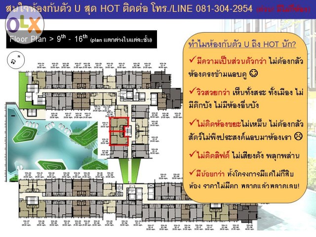 * ห้องก้นตัว U ของโครงการนี้จึงเหมาะสำหรับทั้ง (ย้ำว่าต้องห้องตำแหน่งนี้เท่านั้น)