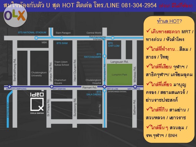 - ใกล้สถานที่สำคัญอื่นๆ อาทิ สวนลุม / รพ.จุฬาฯ / รพ. BNH