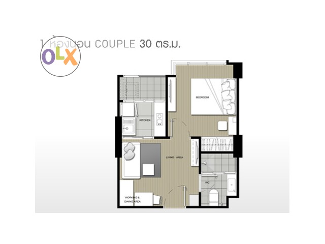 1 ห้องนอน 1 ห้องน้ำ 1 ห้องครัว