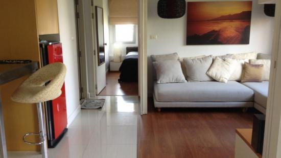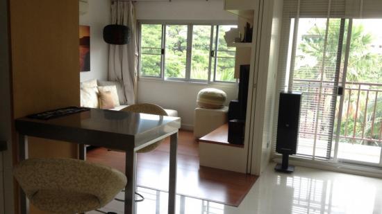 Condo One Siam on soi kasermsan 3. 350m from MBK center, behind Jim Thomson house museum. It is a corner room with exceptional high view over Jim Thomson museum gardens and over Baan Khoua neighborhood. Very quiet 2 bed-room 2 bathroom that can be converted in one main bed room, TV room and living, with sliding door. Only one neighbor, special privacy in a small very well maintained low-rise building that offers great quality of life, privacy and comfort.