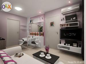 1ห้องนอน 1ห้องน้ำ โซนรับแขกและครัว