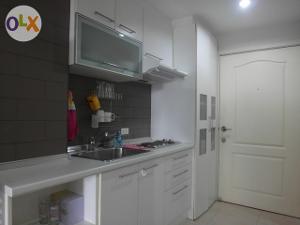 Fully furnished, TV LCD 32”, well-equipped kitchen induction hob, cooker hood, microwave, fridge, cabinets. Bedroom with an Air Purifier, King-size bed and big wardrobe. Living room with a sofa, desk and chair, dining table. Two split air conditioners. Washing machine, Bathtub, Water heater