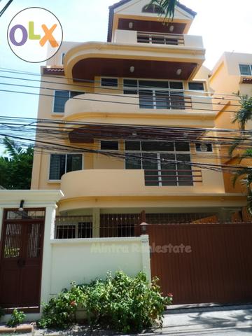 4 Storeys, 40 sq.w., 350-400 sq.m., 4 Bedrooms, 5 Bathrooms, Small Garden, 1 Study room, 1 Storage room, 1 room & 1 bath for maid, 1 Dinning room, 1 Kitchen, 1 Living room, 2 Car parking, Electric Gate,(True Internet, TOT, True Visions,) fully furnished (TV.51”, gas stove, hood, oven, refrigerator, washing machine, etc.)