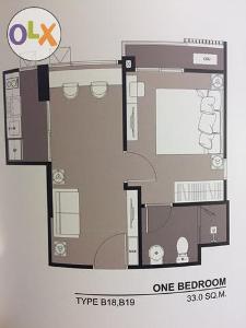 ห้องมุม ชั้น 24 (โครงการ25ชั้น) จากภาพห้อง B18 เป็นแบบ one bedroom ขนาด 33 ตารางเมตร พร้อมประตู digital door lock