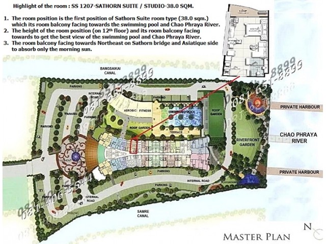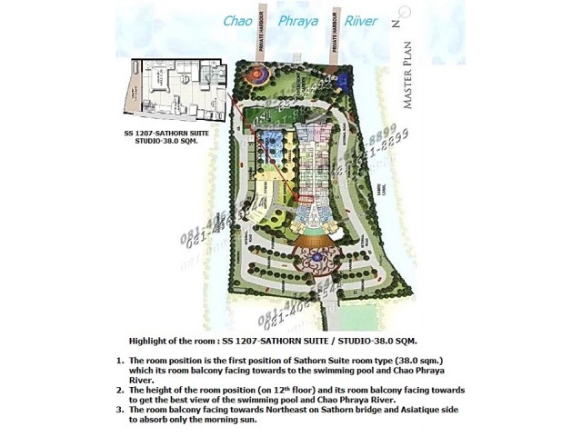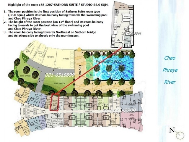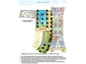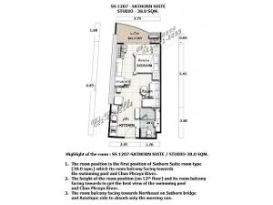 1. The room position is the first position of Sathorn Suite room type (38.0 sqm.) which its room balcony facing towards to the swimming pool and Chao Phraya River.