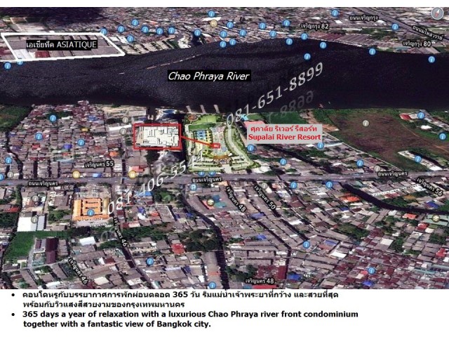 The Unique Architectural design with Modern oriental style of 42-story riverfront Condominium on 12-0-72 rais. with fully equipped facilities.