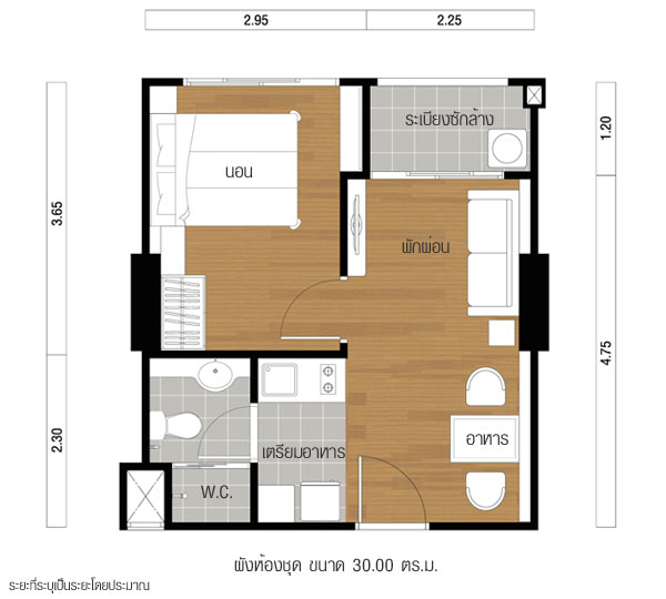 ขนาดพื้นที่ 37.0 ตารางเมตร