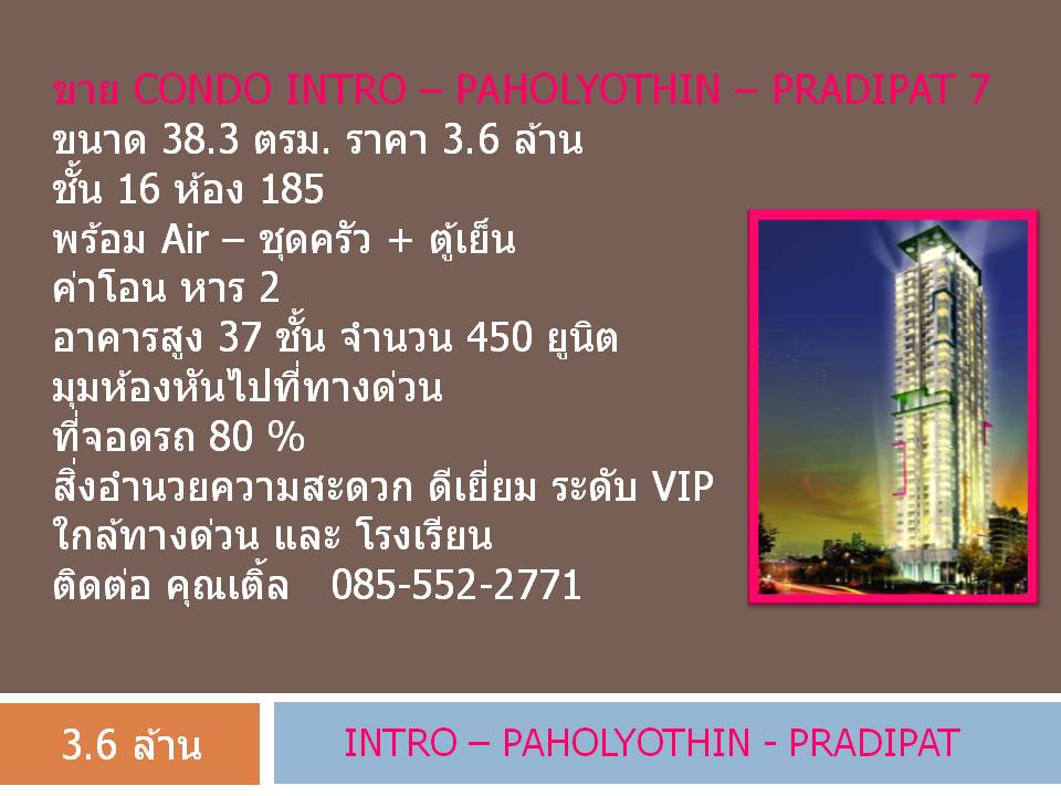 ขายคอนโดอินโทร พหลโยธิน-ประดิพัทธ์ INTRO PAHOLYOTHIN-PRADIPAT