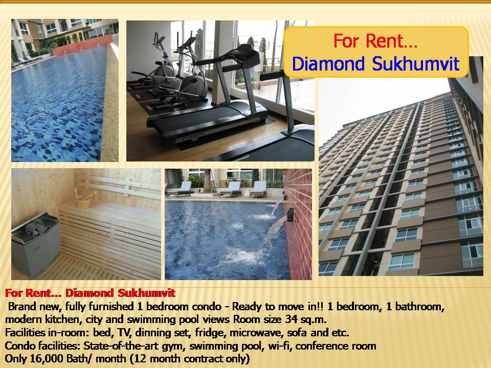 ให้เช่า 1นอน34ตรม17500บ ไดมอนด์ สุขุมวิท DIAMOND Sukhumvit ใกล้ เทสโก้โลตัส