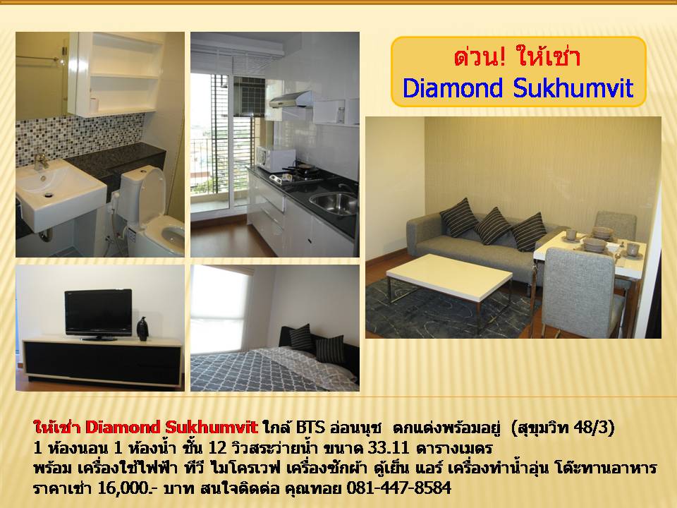 ให้เช่า Diamond Sukhumvit ใกล้ BTS อ่อนนุช ตกแต่งพร้อมอยู่ (สุขุมวิท 48/3)
