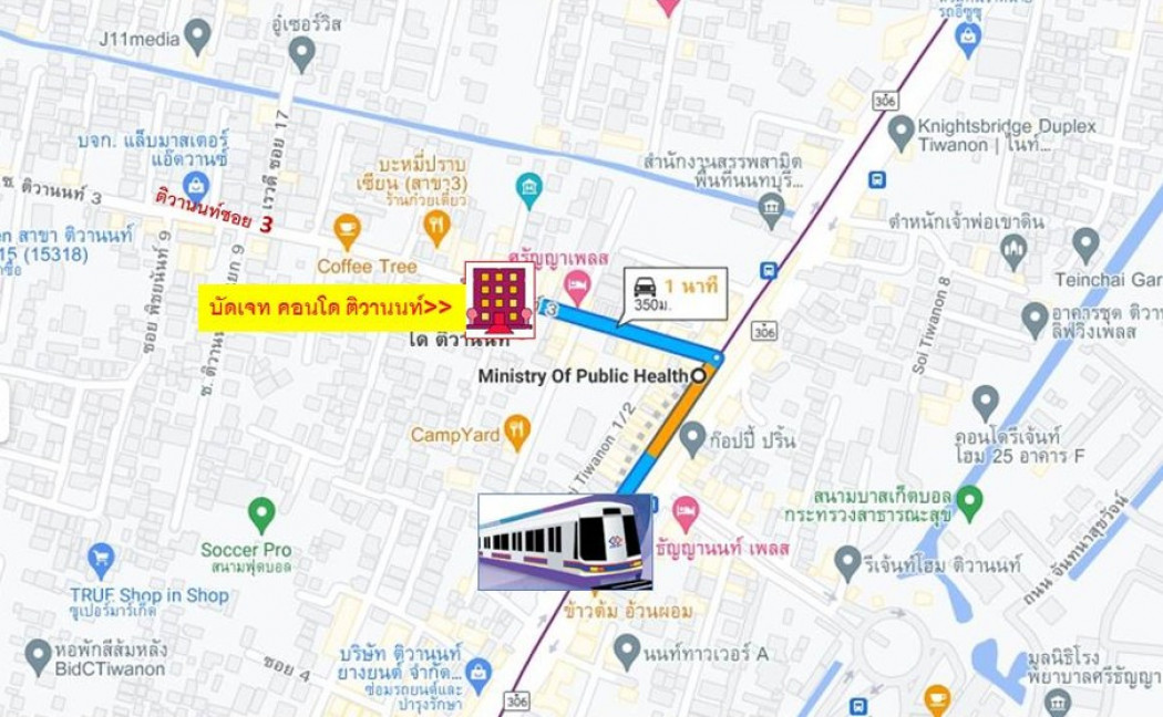 โครงการอยู่ใน ซอยติวานนท์ 3 ห่างจากสถานีรถไฟฟ้าสถานีกระทรวงสาธารณสุขเพียง 350 เมตร