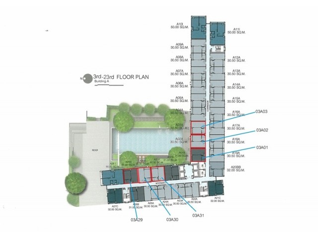 - 03A01 ทิศเหนือ มุมดี วิวสระว่ายน้ำ , พื้นที่ 30.5 ตรม.
