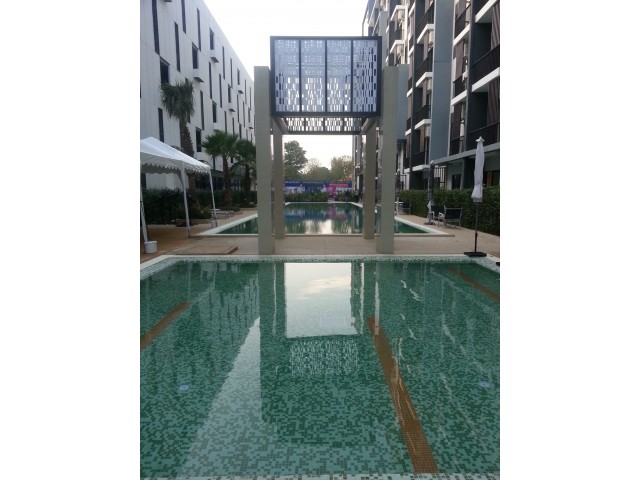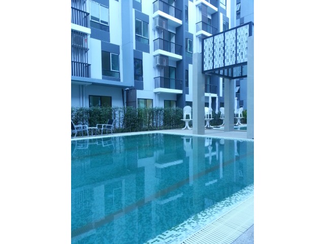 Pretty new room of project of Icondo sukaphjban 2, Bangkok near motor way and airport. From behind room having a big garden for exercise , Car parking building and swimming pool . No trees blocking the behind the room . More space more than 3 sqm behind it look Privacy and more than other rooms.