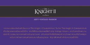 จากกระแสตอบรับอันดีเยี่ยมของ The Knight l Condominium จึงเกิด The Knight ll Condominium ด้วยนิยามแห่งรสนิยมเหนือใคร ภายใต้สังคมคุณภาพสไตล์ Arty Vintage Passion แรงบันดาลใจแห่งงานศิลปะชิ้นเอกผนวกการตกแต่งกลิ่นอายวินเทจ สร้างสรรค์สิ่งที่ดีที่สุดดุจดั่งรางวัลแห่งความสำเร็จแด่คุณ เหนือกว่าด้วยการเดินทางแสนสบายในทุปรูปแบบ พิสูจน์ตัวตนที่แท้จริงของคุณได้ที่นี่ ฉลองยอดขายกว่า 50 % จัดกิจกรรมเพื่อขอบคุณลูกค้ากับงาน Thank you party เพลิดเพลินกับเครื่องดื่มและอาหารว่างมากมาย พิเศษ !! จองพร้อมทำสัญญาในงาน รับ iPad mini วันนี้ – 30 มิถุนายน 2556