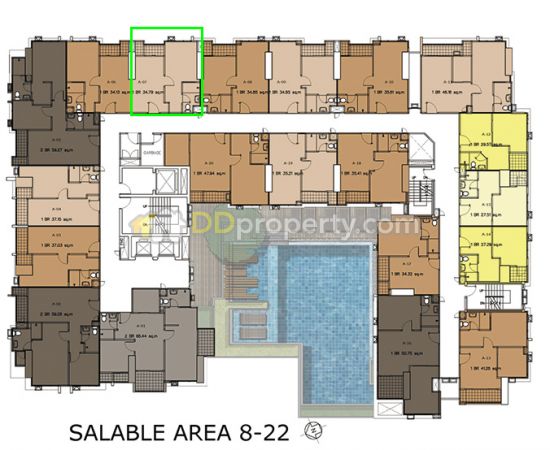 Pre-sale price : 2,009,551 baht, Unit room No. : A1007, 10th Floor, Unit area : 34.79sq.m.