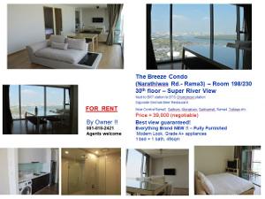ให้เช่า Breeze rama3 1 ห้องนอน 1 ห้องน้ำ 45 ตรม. ชั้น 9