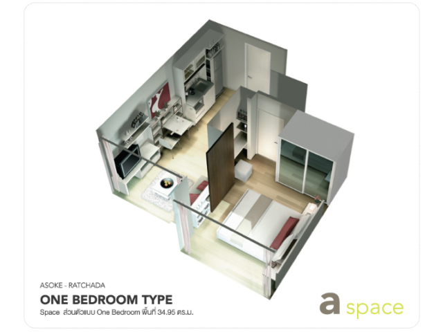 ให้เช่าคอนโด A space (อโศก-รัชดา) 35.5ตรม. 1นอน 1น้ำ