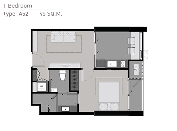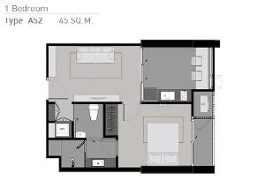 A61-0255 ปล่อยเช่า ริทึ่ม สุขุมวิท 42 ใกล้ขนส่งสาธารณะหลายแห่ง ขนาด 45 ตรม พร้อมเฟอร์นิเจอร์ครบครัน