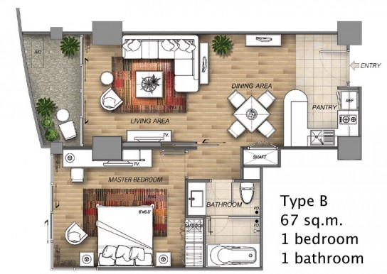 ขนาดพื้นที่ 67.0 ตารางเมตร
