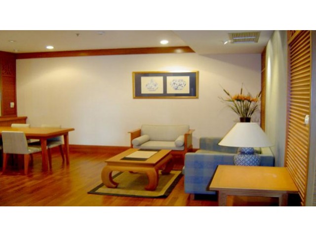 Fully furnished. Thai silk - wood decorated, wooden floor, L-shape lay out. Large common outdoor swimming pool. Equipped gym room. Luxurious building. Short walk to Central department store, BTS chidlom, Lumpini park and many convenient stores