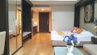 ภายในห้องมี เตียงพร้อมลิ้นชักใต้เตียง ตู้เสื้อผ้าขนาดใหญ่ ชั้นวางหนังสือ โต๊ะทำงาน และ ชั้นวางโทรทัศน์ แบบ Built-in อ่างล้างชาม ตู้เก็บของในห้องครัวและโต๊ะทานข้าวพร้อมเก้าอี้ สองตัว